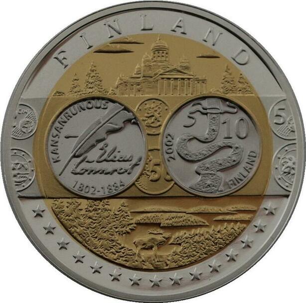 R1339 Medal Finland 10 Euros Elias Lönnrot 2002 Silver 999% PF Proof BE -> Offer