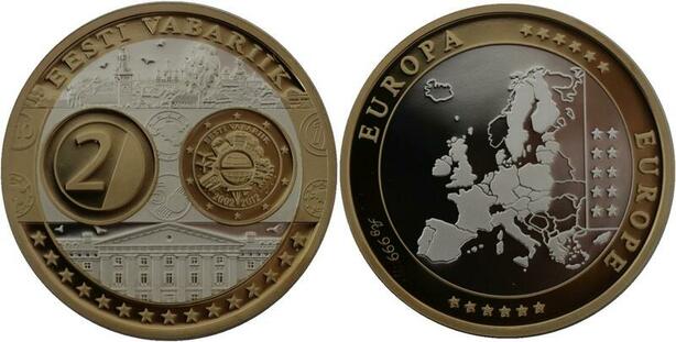 R1349 Medal Estonia 2 Euros 10 Years Euro 2002-2012 Silver 999% PF Proof BE