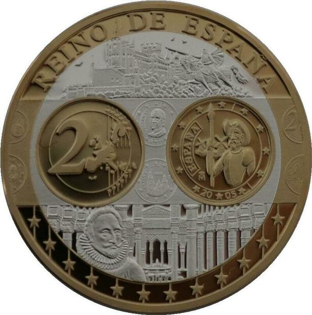 R1352 Medal Spain 2 Euro Don Quichotte 2005 Silver 999% PF Proof BE >M Offer