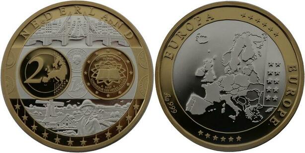 R1368 Medal Netherlands 2 Euros Traity Rome 2007 Silver 999% PF Proof BE >Offer