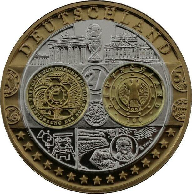 R1375 Medal Deutschland 100 Euros Währungsunion 2002 Silver 999% PF Proof BE