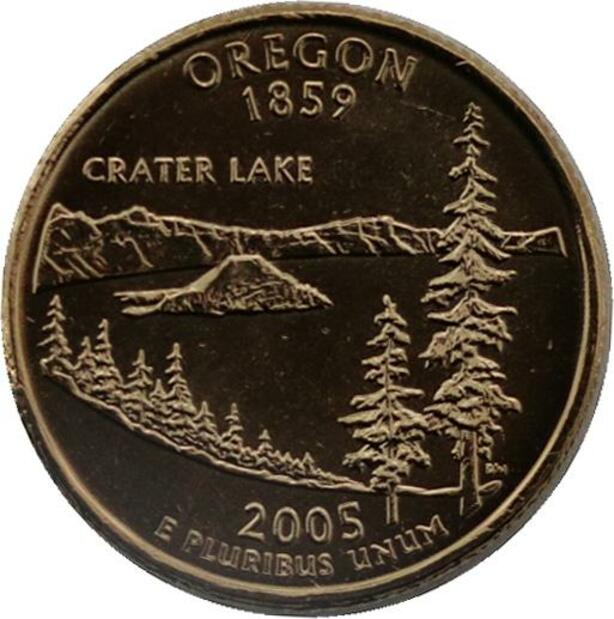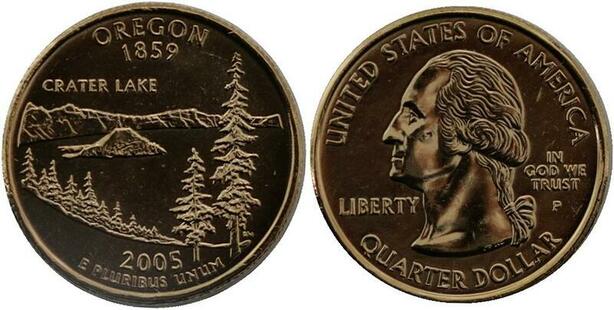 R1385 USA Oregon Quarter 1/4 Dollar Crater Lake 1859 2005 Gold Plated UNC >Offer