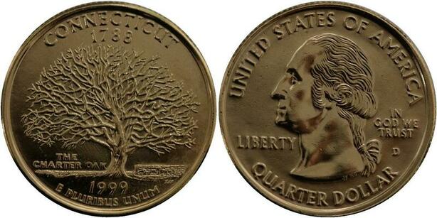 R1386 USA Connecticut Quarter 1/4 Dollar 1788 1999 Gold Plated UNC -> Make Offer