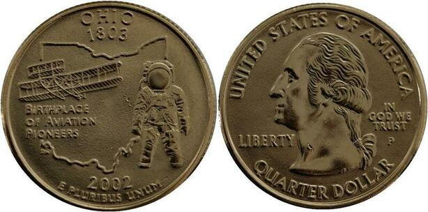 R1387 USA Ihio Quarter 1/4 Dollar Aviation Pioneers 1803 2002 Gold Plated