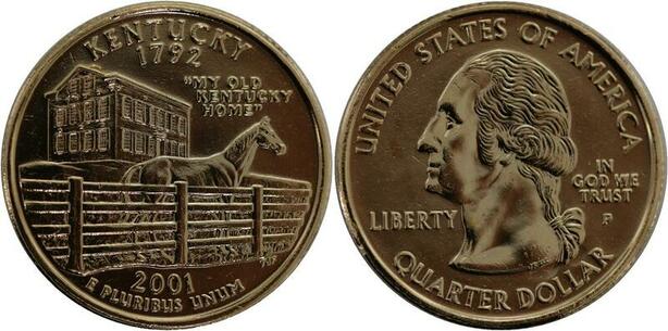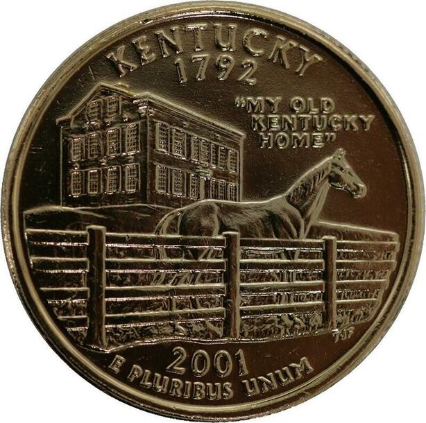 R1396 USA Kentucky Quarter 1/4 Dollar Horse 1792 2001 Gold Plated UNC >M Offer