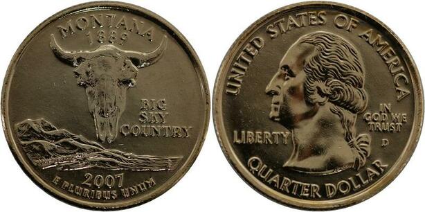 R1398 USA Montana Quarter 1/4 Dollar Bull 1889 2007 Gold Plated UNC -> Make Offer