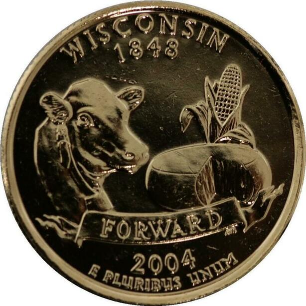R1403 USA Wisconsin Quarter 1/4 Dollar Cow Cheese 1848 2004 Gold Plated UNC