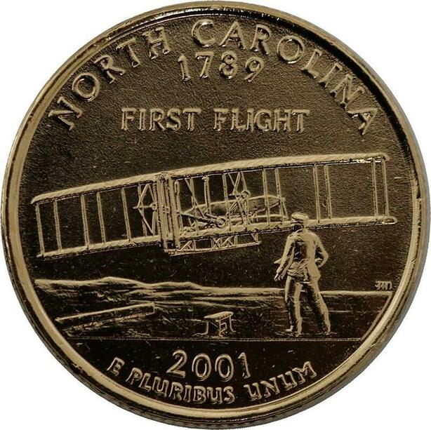 R1404 USA North Carolina Quarter 1/4 Dollar 1st flight 1789 2001 Gold Plated UNC