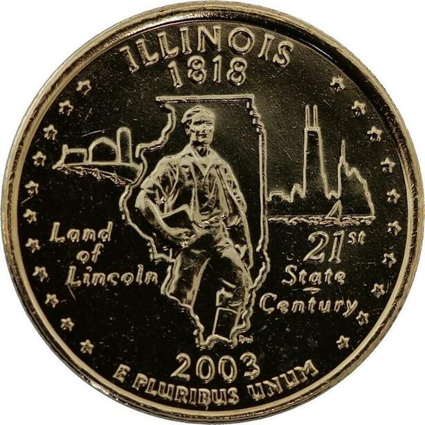 R1406 USA Illinois Quarter 1/4 Dollar Lincoln 1818 2003 Gold Plated UNC ->Offer