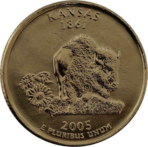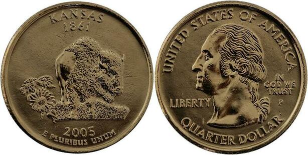 R1411 USA Kansas Quarter 1/4 Dollar Bull 1861 2005 Gold Plated UNC -> Make Offer