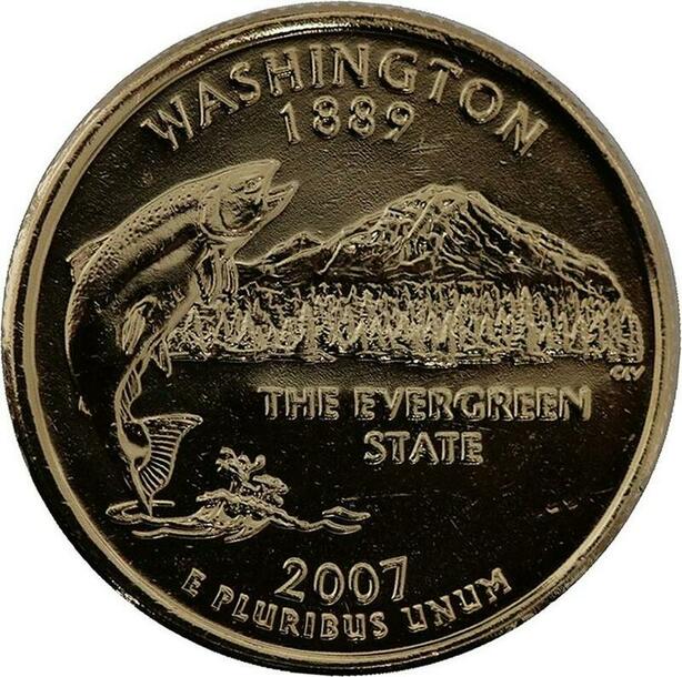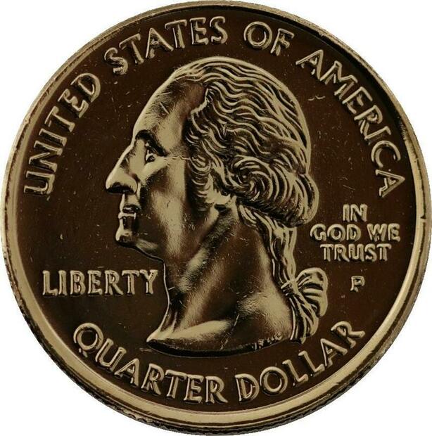 R1415 USA Washington Quarter 1/4 Dollar Evergreen 1889 2007 Gold Plated UNC