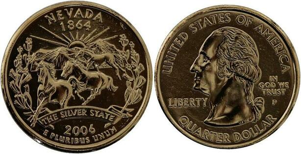 R1418 USA Nevada Quarter 1/4 Dollar Horses 1864 2006 Gold Plated UNC >M Offer