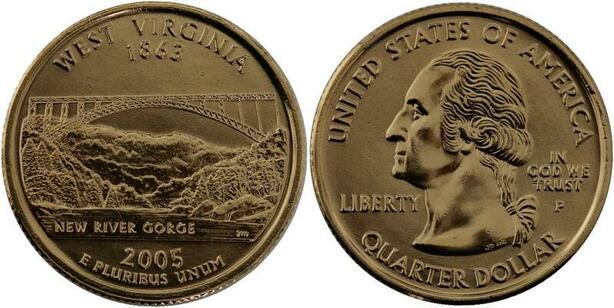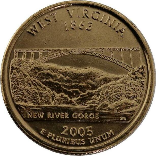 R1419 USA West Virginia Quarter 1/4 Dollar New River Gorge 1863 2005 Gold Plated