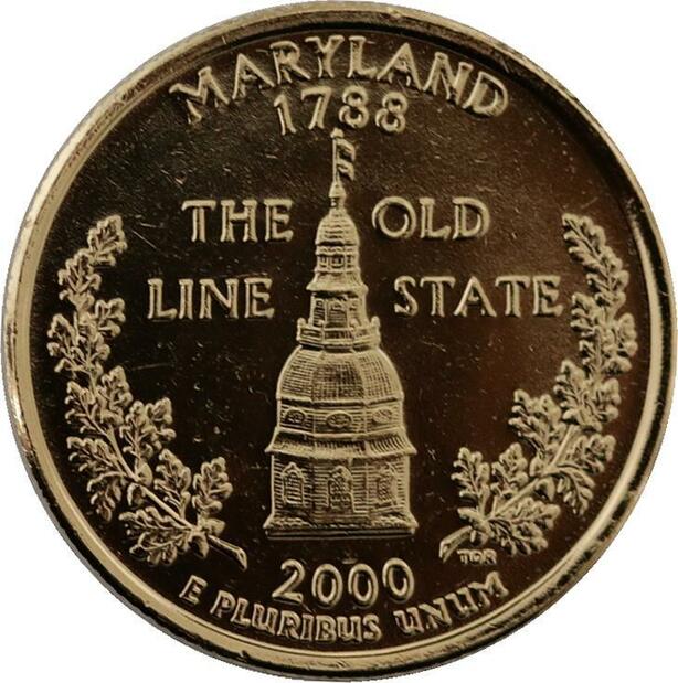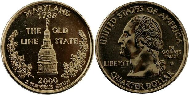 R1423 USA Maryland Quarter 1/4 Dollar Old Line State 1788 2000 Gold Plated UNC