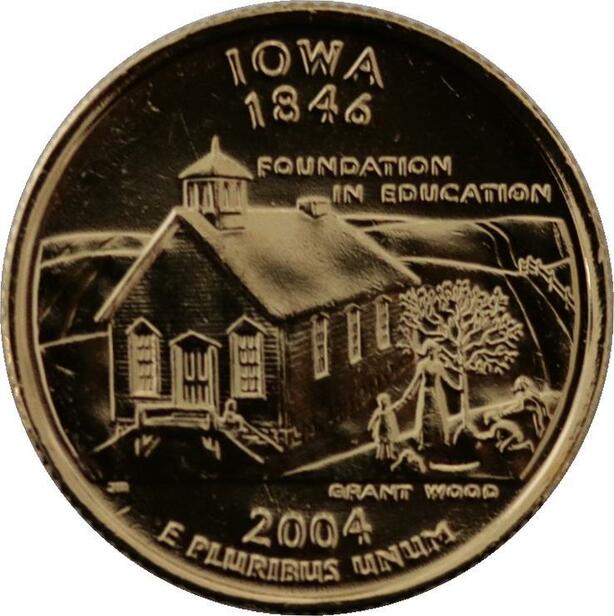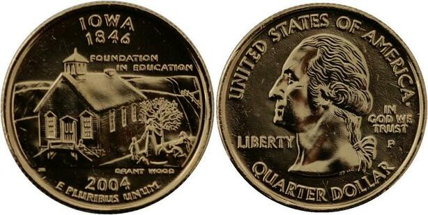 R1424 USA Iowa Quarter 1/4 Dollar Education 1746 2004 Gold Plated UNC >M Offer