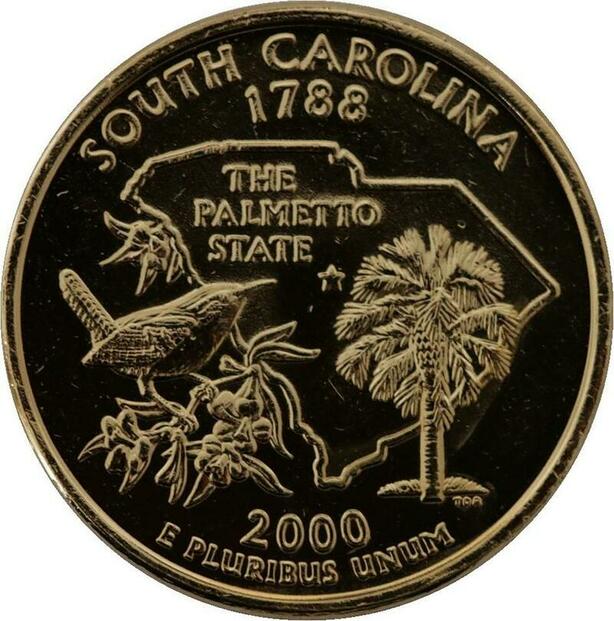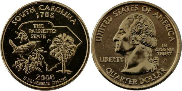 R1428 USA South Carolina Quarter 1/4 Dollar Palmetto State 1788 2000 Gold Plated