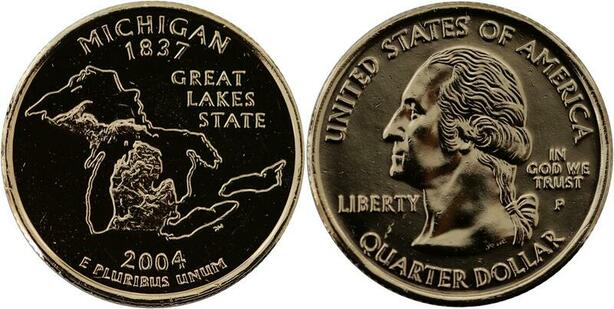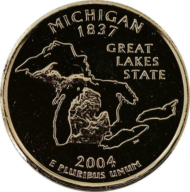 R1430 USA Michigan Quarter 1/4 Dollar Great Lakes 1837 2004 Gold Plated UNC