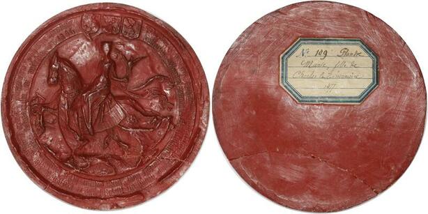 R1454 Rare Sceau Seal Flandres Marie fille Charles Le Téméraire 1477 12cms SUP