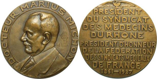 R1549 Médaille Médecine Dr Marius Michon Médecins Rhone Chorel 1928 SUP