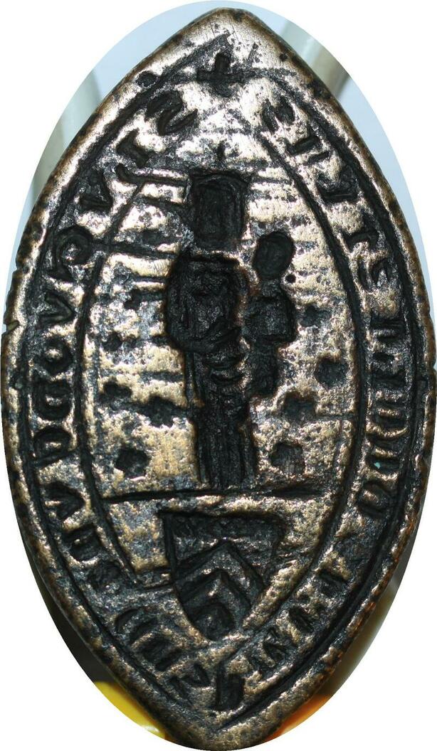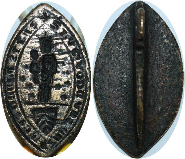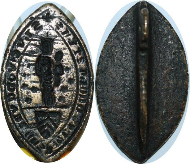 R1653 Unique Sceau Matrix Mandorle Vierge Marie Enfant Blason 3 Chevrons XIIIème