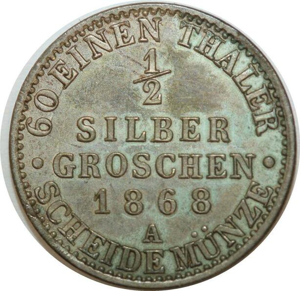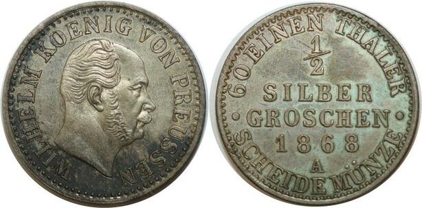 R1666 German States Prussia 1/2 Neu Groschen Wilhelm I 1868 A Silver UNC ->Offer