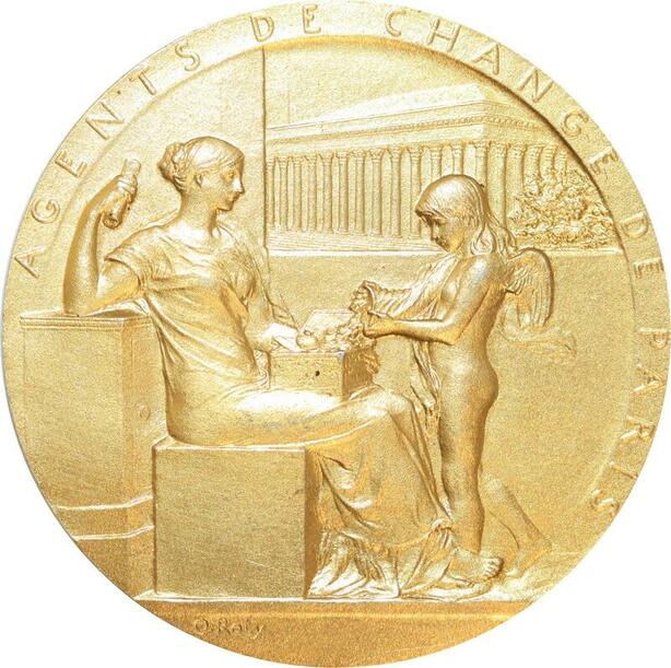 R1698 Rare Médaille Art Nouveau Agent Change 1898 Vermeil Roty Guillaumot SPL