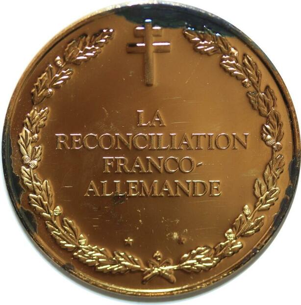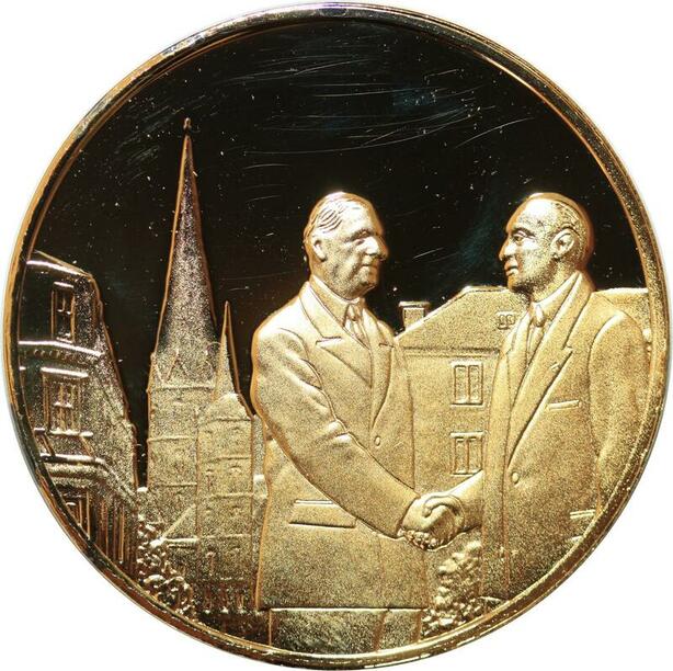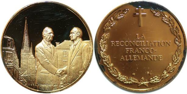 R1699 Médaille Charles de Gaulle Réunification FR - DE Adenauer Vermeil Proof