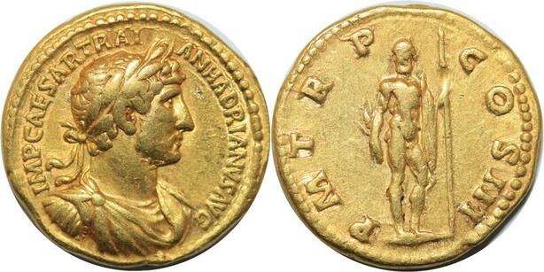 R1727 Rare Roman Empire Aureus Hadrian Rome 119-125 Jupiter Or Gold XF !!