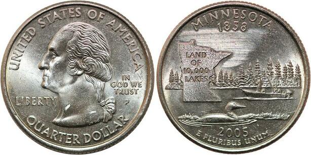 R1734 USA Minnesota Quarter 1/4 Dollar land of 10000 lakes 1858 2005 UNC ->Offer