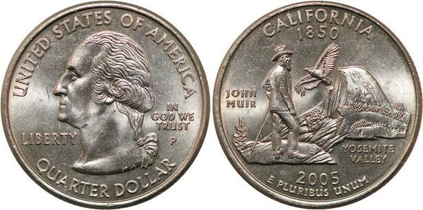 R1735 USA California Quarter 1/4 Dollar John Mur Yosemite Valley 1850 2005 UNC