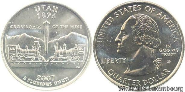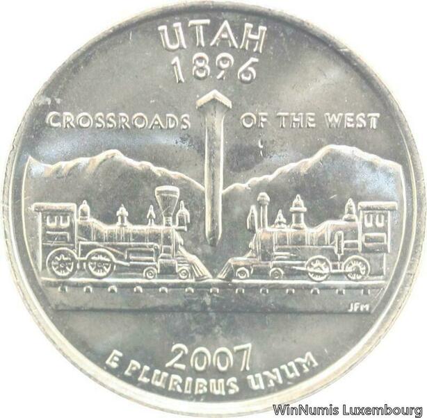 R1739 USA Utah Quarter 1/4 Dollar Crossroads of the west 1896 2007 UNC ->Offer