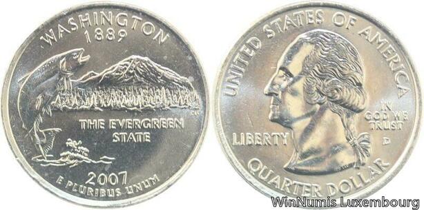R1741 USA Washington Quarter 1/4 Dollar The Evergreen State 1889 2007 UNC >Offer