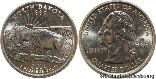 R1745 USA North Dakota Quarter 1/4 Dollar Bisons 1889 2006 UNC -> Make offer