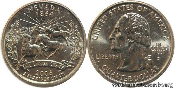 R1746 USA Nevada Quarter 1/4 Dollar The silver state 1864 2006 UNC -> Make offer