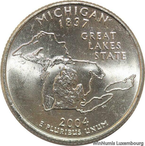R1748 USA Michigan Quarter 1/4 Dollar Great lakes state 1837 2004 UNC -> M Offer