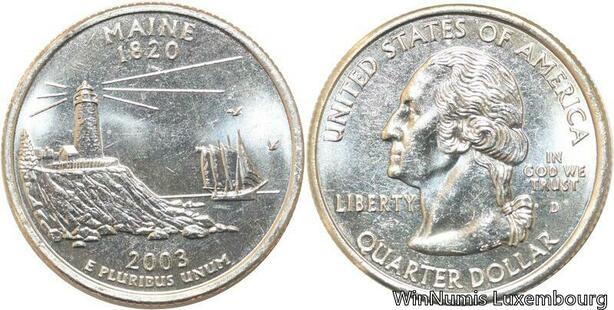 R1754 USA Maine Quarter 1/4 Dollar Liberty 1820 2003 UNC -> Make offer