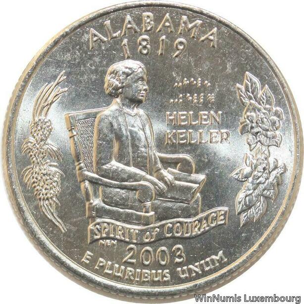 R1756 USA Alabama Quarter 1/4 Dollar Hellen Keller Spirit Courage 1819 2003 UNC