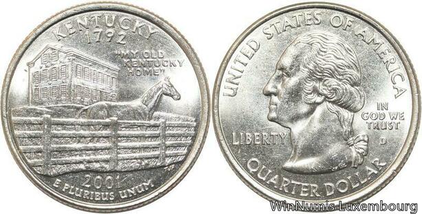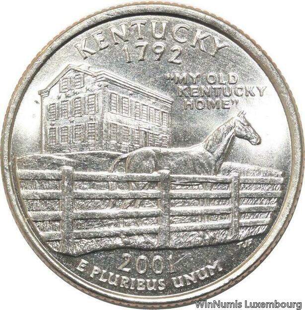 R1761 USA Kentucky Quarter 1/4 Dollar My Old Kentucky Home 1792 2001 UNC ->Offer