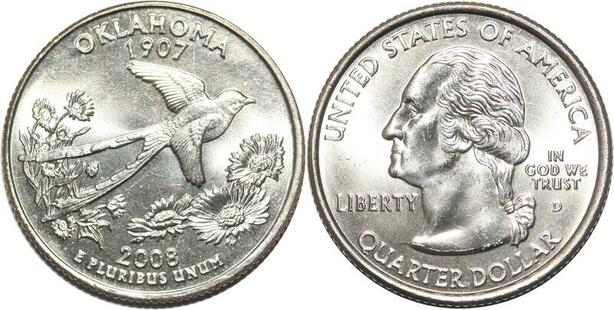 R1764 USA Oklahoma Quarter 1/4 Dollar Liberty 1907 2008 UNC -> Make offer