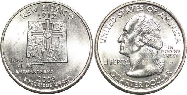 R1765 USA New Mexico Quarter 1/4 Dollar Land of Enchantement 1912 2008 UNC