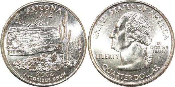 R1767 USA Arizona Quarter 1/4 Dollar Grand Canyon State 1912 2008 UNC -> M Offer