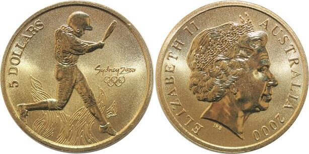 R1772 Australia 5 Dollars Elizabeth II Olympics Games Softball Sydney 2000 UNC