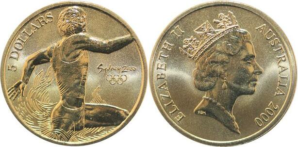 R1775 Australia 5 Dollars Elizabeth II Olympics Games Triathlon Sydney 2000 UNC
