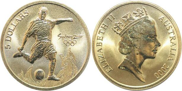 R1786 Australia 5 Dollars Elizabeth II Olympics Games Football Sydney 2000 UNC
