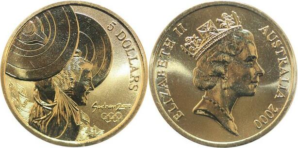 R1789 Australia 5 Dollars Elizabeth II Olympics JO Weightlifting Sydney 2000 UNC