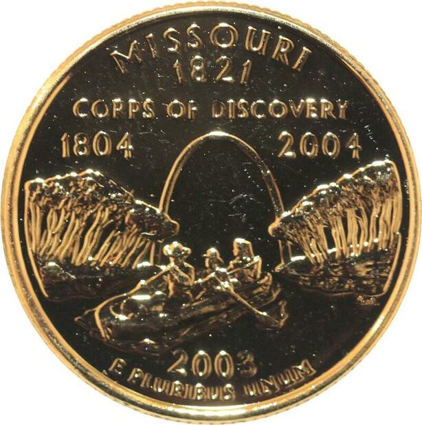 R1794 USA Missouri Quarter 1/4 Dollar Corps Discovery 1821 2003 Gold Plated UNC