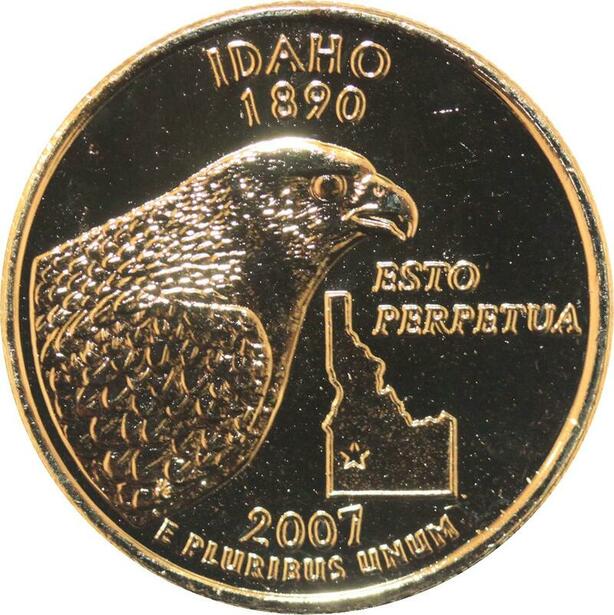 R1795 USA Idaho Quarter 1/4 Dollar Esto Perpetua 1820 2007 Gold Plated UNC