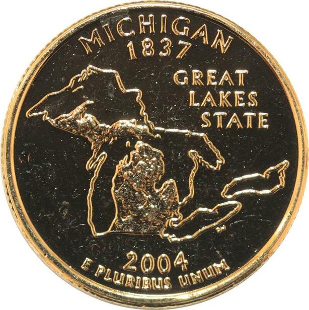 R1799 USA Michigan Quarter 1/4 Dollar Great Lake State 1837 2004 Gold Plated UNC