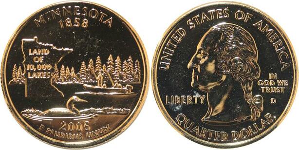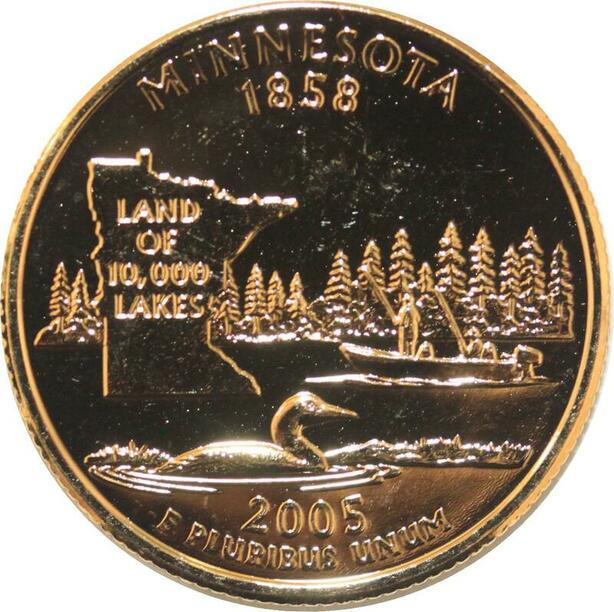 R1802 USA Minnesota Quarter 1/4 Dollar 10000 Lakes 1858 2005 Gold Plated UNC