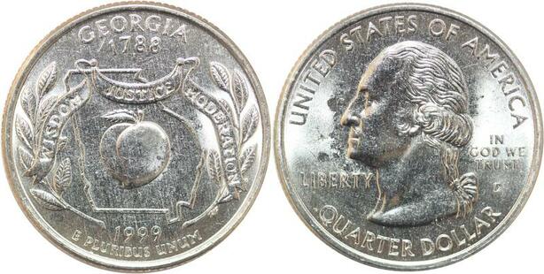 R1810 USA Georgia Quarter 1/4 Dollar Peach 1788 1999 UNC -> Make Offer